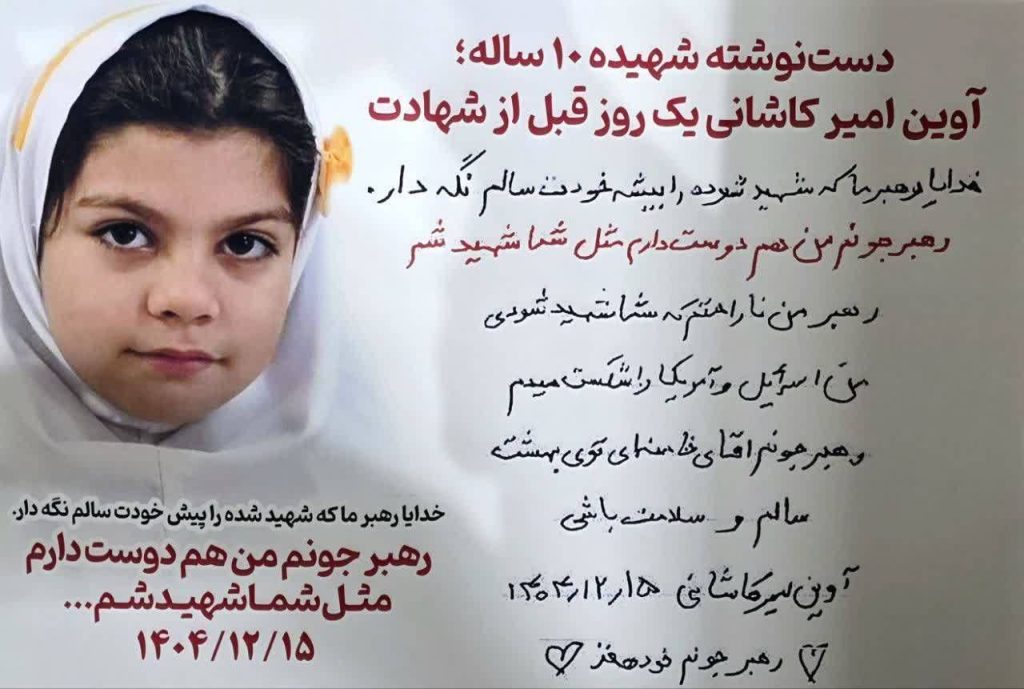 آوین،نامه ای به رهبر شهیدش نوشت.